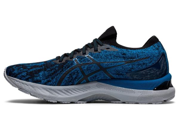 The GEL-NIMBUS® 23 Knit running shoe continues to offer excellent comfort and long-run impact absorption. Its improved stability provides a more balanced stride that’s followed by smoother transitions. Constructed with comfort and breathability in mind, this shoe features a soft knit design for long runs. Engineered eyelet shaping helps the upper move more naturally with the foot, while a stretchy midfoot panel appropriately hugs the foot to generate better flexibility. Additionally, the shoe’s upper is made with recycled materials to reduce waste and carbon emissions. Providing the runner with excellent shock absorption and softness, the GEL-NIMBUS® 23 Knit delivers more compression in the heel thanks to its softer GEL® technology cushioning unit and contoured design lines. Also, a gender-specific TRUSSTIC™ device provides an articulated amount of support in the right direction for men and women to help generate a smooth transition. Under the toe, the inclusion of gender-specific pillars help cushion the body and help runners experience a softer feel. Simultaneously, the OrthoLite™ X-55 sockliner equips runners with a forgiving, yet responsive stride. The components of the GEL-NIMBUS® 23 Knit shoe help increase the softness without forgoing the integrity of the shoe’s ride. Our 23rd version of the GEL-NIMBUS® continues to make advancements within the lineage by offering improved support and comfort for distance runners.