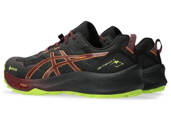 The GEL-TRABUCO® 11 GTX shoe is a versatile trail style that offers adaptive stability with less weight. It’s designed with a GORE-TEX™ membrane that helps keep your feet warm and dry in wet conditions.An adaptive guidance system and wide basenets help create a more stable ride on varying terrain. They’re functional for when you need extra support during the later stages of your outdoor excursion.Its updated rock protection plate features a flexible construction that shields your feet from sharp rocks and rugged terrain. We also added 2mm to the foam’s stack height to improve comfort and impact absorption.The outsole is formed with a revamped ASICSGRIP™ technology. This material helps you experience better traction on varying off-road surfaces.