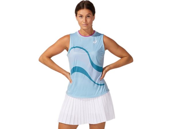 The MATCH GRAPHIC TANK features water repellent mesh paneling to help tennis athletes keep dry and cool on the tennis court. Constructed with a ribbed collar and sunflare print, this top is also designed with recycled materials to support a more sustainable manufacturing approach.