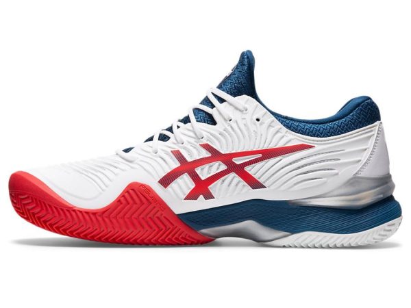 Power your clay court game in the COURT FF™ Clay tennis shoe by ASICS that is packed full of technical features to help you twist and jump for each ball. The shoe’s FLYTEFOAM® midsole will help put a spring in your run – it’s an advanced formulation that responds to the energy of your jumps. There’s also GEL® technology in the front and back of the shoe, cushioning your landings so you can reach up for that killer smash with confidence. The SOLYTE™ insole also improves your bounce-back, as well as helping the shoe last well. And because comfort is key, we’ve fitted the COURT FF™ Clay model with a MONO-SOCK™ fit that makes it easy to put on and wear. You want your feet to say fresh and cool, so we’ve added a removable OrthoLite™ sockliner, which helps with bounce and moisture management, while the TRUSSTIC SYSTEM® technology under the mid-foot makes the shoe nice and stable too. A good tennis shoe needs to be hard-wearing, so there’s a tennis AHAR® outsole. This highly resistant rubber compound helps reduce wear on the parts of the shoe which make lots of contact with the ground. With a contemporary design, the COURT FF™ Clay model is a good-looking shoe full of features to help you play great tennis.