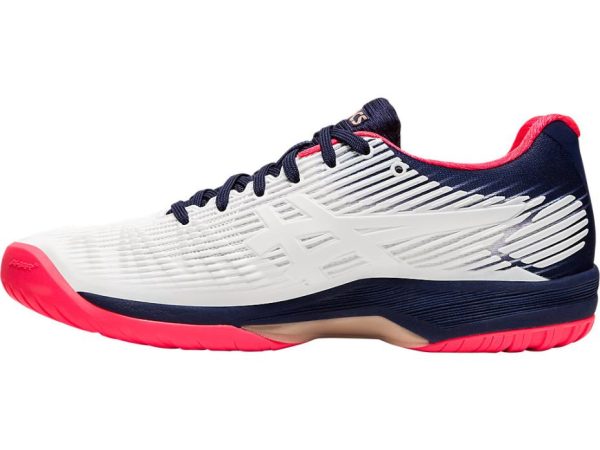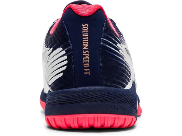 When you’re playing a high-impact sport like tennis, you need technically advanced footwear that’s going to protect your feet and knees. The women’s SOLUTION SPEED™ FF tennis shoe by ASICS boasts an unrivalled blend of style and supportive technology. With its lightweight cushioning, this shoe is designed to propel you to greater heights on the court. It features FLYTEFOAM® technology in the midsole, an organic compound made from organic fibers that doesn’t create the “packing out” that so often happens with softer, lower density foams. It also features the TWISTRUSS™ System, which absorbs shock while allowing the foot a full range of movement. It boasts rear and forefoot GEL® technology, providing unparalleled comfort and shock absorption. Meanwhile, the FLEXION FIT® upper gives added stability for lightning-quick movement during your game and the ORTHOLITE™ sockliner is removable to accommodate a medical orthotic. The SOLUTION SPEED™ FF tennis shoe boasts a durable tennis AHAR® outsole, FLEXION FIT® vamps and PGUARD™ toe protector, as well as an Anti-Gravel Tongue that repels dirt and debris, so nothing will get in the way of your game. It all makes for a durable shoe that you can really put through its paces on court.
